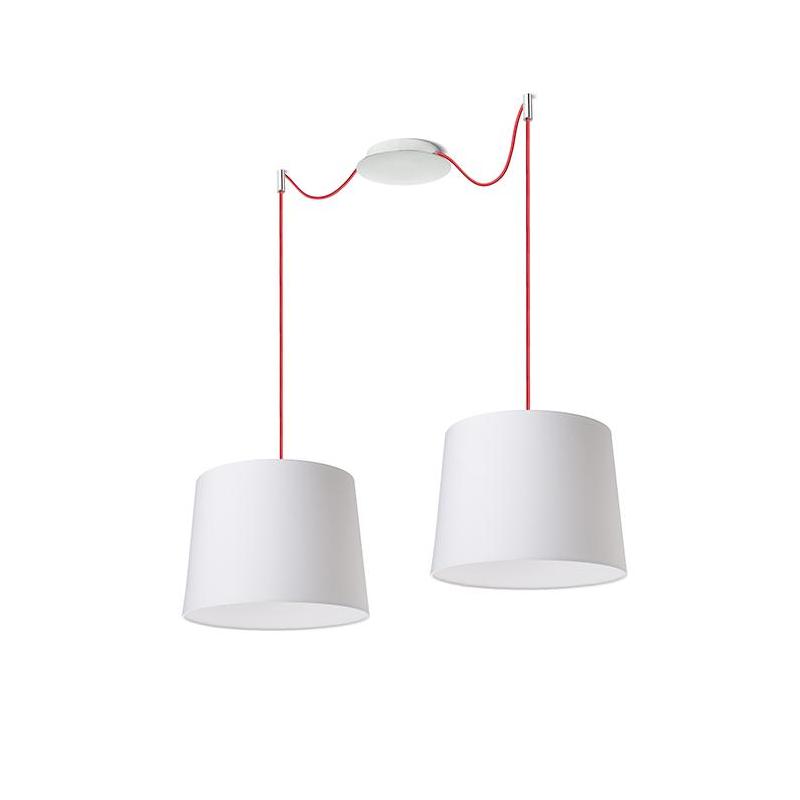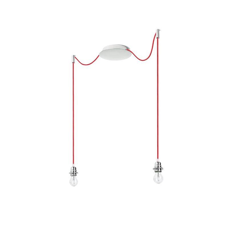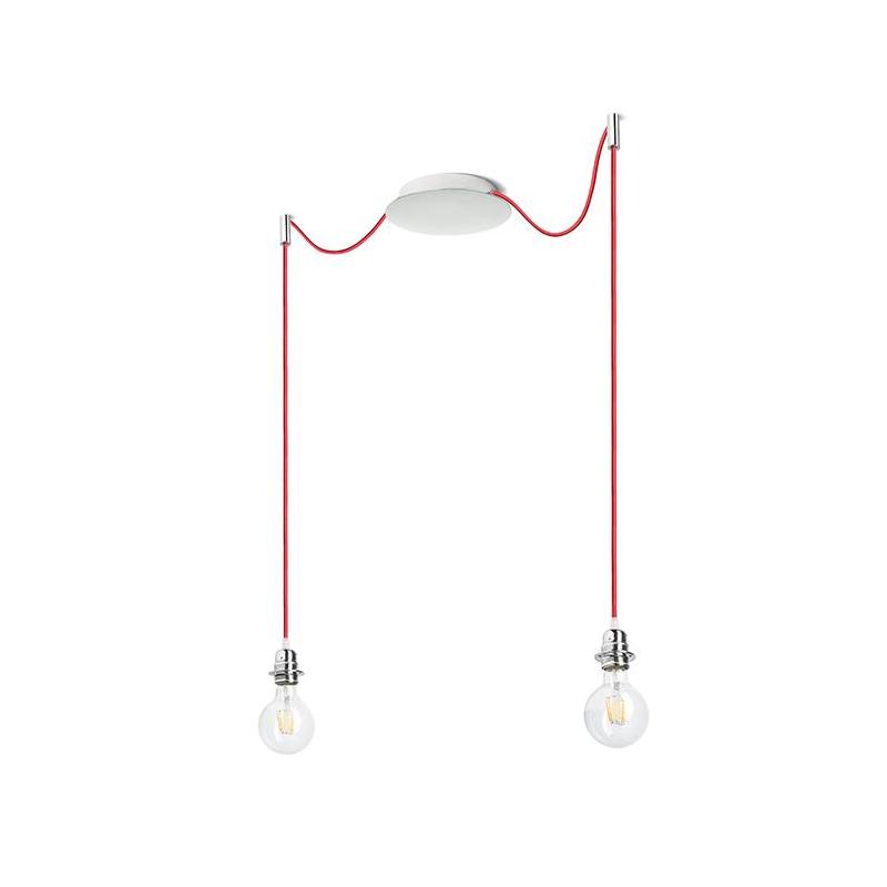 Zestaw wiszący z centralną sufitową podstawą z której wychodzą dwa tekstylne kable z metalową oprawką E27 mocowane odzielnie obok podstawy. Kable posiadają chromowe uchwyty pozwalające na umieszczenie ich na suficie w dowolnej odlegości od podstawy. Długość kabli 3 m. Polecane akcesoria: ARISTA DELI JAKARANDA DOUBLE 40/30 DOUBLE 55/30 ASPRO 40/30 ASPRO 55/30 RON 15/20 RON 40/25 RON 55/30 TEMPO 15/30 TEMPO 30/19.