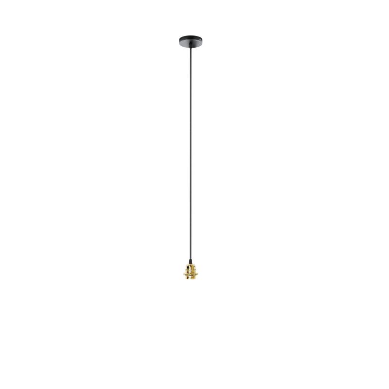 Zestaw wiszący z okrągłą rozetą lakierowaną na czarno kablem tekstylnym i metalowym oprawką E27 przeznaczona do zawieszenia lekkich abażurów lub montażu tylko ze źródłem światła. Polecane akcesoria: ARISTA DELI JAKARANDA DOUBLE 40/30 DOUBLE 55/30 ASPRO 40/30 RON 40/25 RON 55/30 RON 60/19 TEMPO 30/19 TEMPO 50/19.