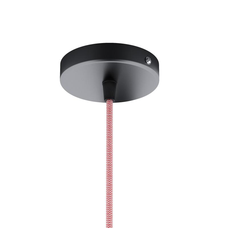 Zestaw wiszący z okrągłą rozetą lakierowaną na czarno kablem tekstylnym i metalowym oprawką E27 przeznaczona do zawieszenia lekkich abażurów lub montażu tylko ze źródłem światła. Polecane akcesoria: ARISTA DELI JAKARANDA DOUBLE 40/30 DOUBLE 55/30 ASPRO 40/30 RON 40/25 RON 55/30 RON 60/19 TEMPO 30/19 TEMPO 50/19.