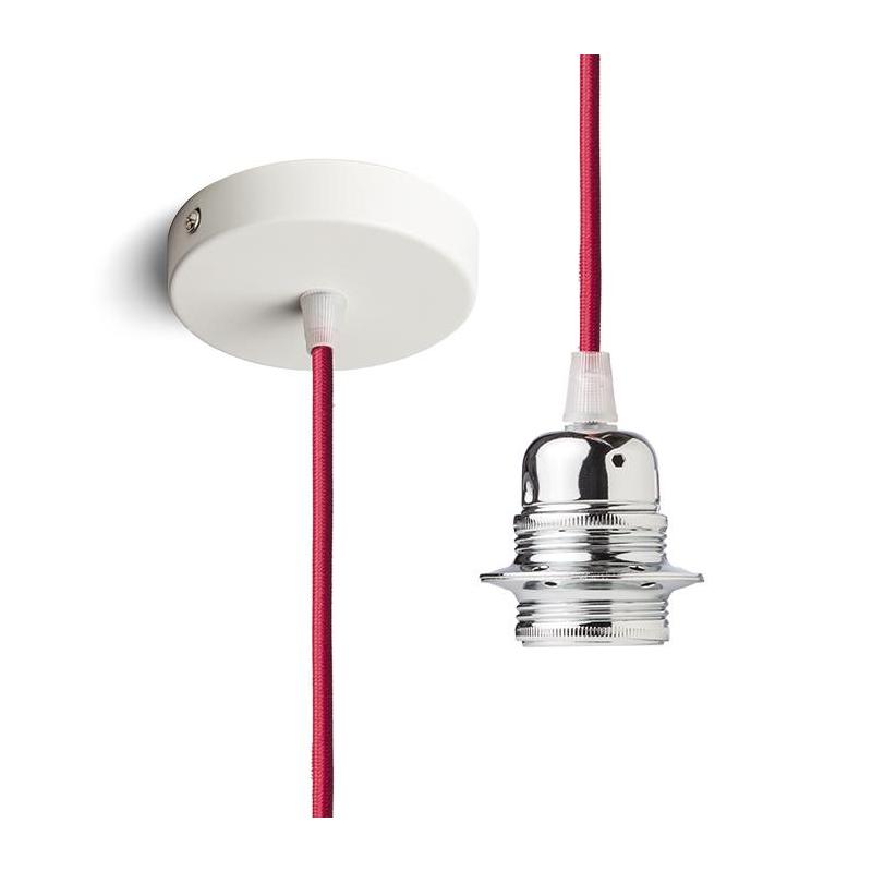 Zestaw wiszący z okrągłą rozetą lakierowaną na biało kablem tekstylnym i metalowym oprawką E27 przeznaczona do zawieszenia lekkich abażurów lub montażu tylko ze źródłem światła. Polecane akcesoria: ARISTA DELI JAKARANDA DOUBLE 40/30 DOUBLE 55/30 ASPRO 40/30 RON 40/25 RON 55/30 RON 60/19 TEMPO 30/19 TEMPO 50/19.