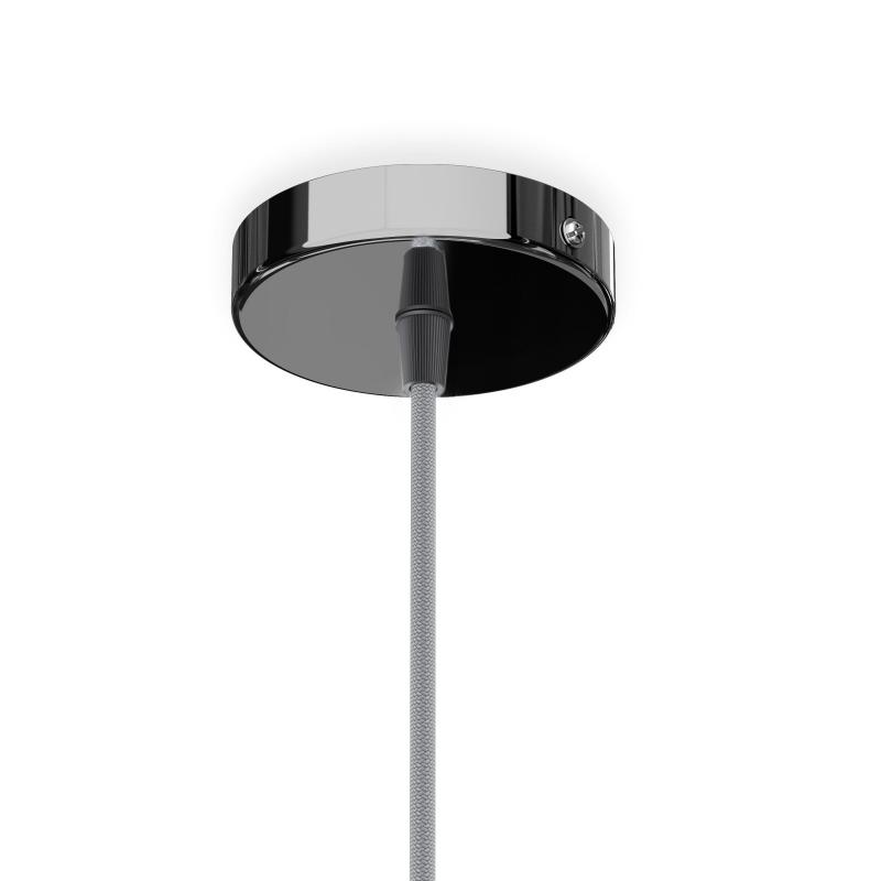 Zestaw wiszący z okrągłą rozetą z czarnego chromu kablem tekstylnym i metalowym oprawką E27 przeznaczona do zawieszenia lekkich abażurów lub montażu tylko ze źródłem światła. Polecane akcesoria: ARISTA DELI JAKARANDA DOUBLE 40/30 DOUBLE 55/30 ASPRO 40/30 RON 40/25 RON 55/30 RON 60/19 TEMPO 30/19 TEMPO 50/19.