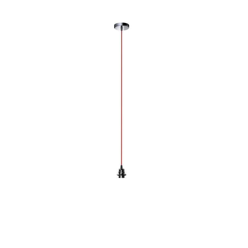 Zestaw wiszący z okrągłą rozetą z czarnego chromu kablem tekstylnym i metalowym oprawką E27 przeznaczona do zawieszenia lekkich abażurów lub montażu tylko ze źródłem światła. Polecane akcesoria: ARISTA DELI JAKARANDA DOUBLE 40/30 DOUBLE 55/30 ASPRO 40/30 RON 40/25 RON 55/30 RON 60/19 TEMPO 30/19 TEMPO 50/19.