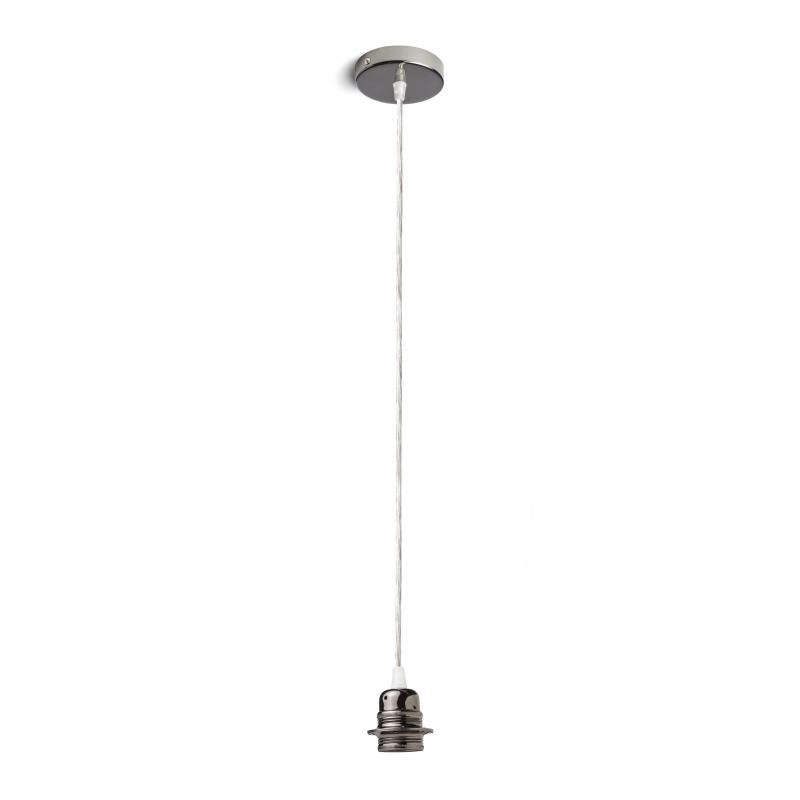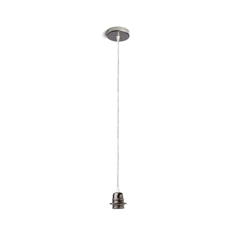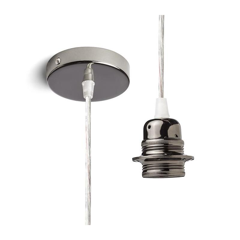 Zestaw wiszący z okrągłą rozetą z czarnego chromu kablem tekstylnym i metalowym oprawką E27 przeznaczona do zawieszenia lekkich abażurów lub montażu tylko ze źródłem światła. Polecane akcesoria: ARISTA DELI JAKARANDA DOUBLE 40/30 DOUBLE 55/30 ASPRO 40/30 RON 40/25 RON 55/30 RON 60/19 TEMPO 30/19 TEMPO 50/19.