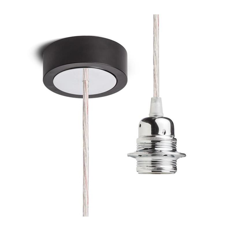 Zestaw wiszący z lakierowaną aluminiową podstawą metalowym gniazdkiem E27 i tekstylnym kablem. Nadaje się do użytku indywidualnego lub do zawieszenia lekkich abażurów. Polecane abażury: ARISTA DELI JAKARANDA DOUBLE 40/30 DOUBLE 55/30 ASPRO 40/30 RON 40/25 RON 55/30 RON 60/19 TEMPO 30/19 TEMPO 50/19.