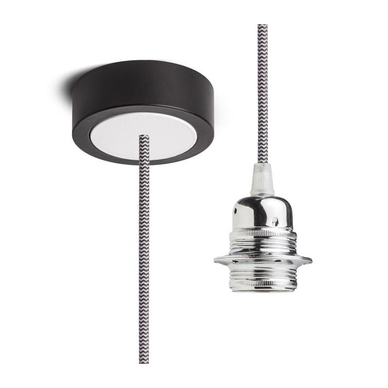 Zestaw wiszący z lakierowaną aluminiową podstawą metalowym gniazdkiem E27 i tekstylnym kablem. Nadaje się do użytku indywidualnego lub do zawieszenia lekkich abażurów. Polecane abażury: ARISTA DELI JAKARANDA DOUBLE 40/30 DOUBLE 55/30 ASPRO 40/30 RON 40/25 RON 55/30 RON 60/19 TEMPO 30/19 TEMPO 50/19.