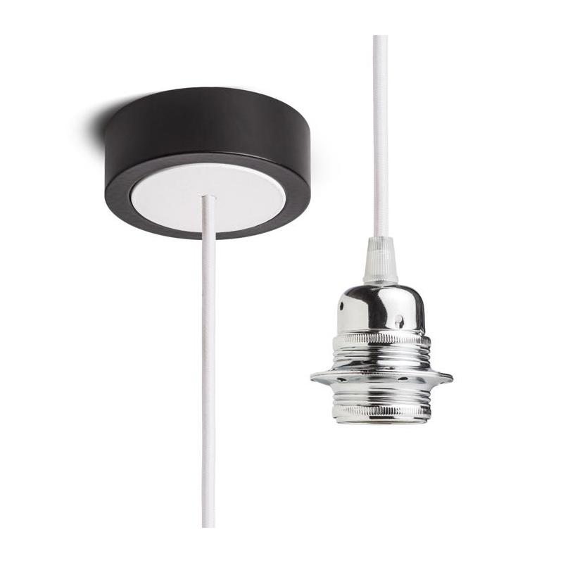 Zestaw wiszący z lakierowaną aluminiową podstawą metalowym gniazdkiem E27 i tekstylnym kablem. Nadaje się do użytku indywidualnego lub do zawieszenia lekkich abażurów. Polecane abażury: ARISTA DELI JAKARANDA DOUBLE 40/30 DOUBLE 55/30 ASPRO 40/30 RON 40/25 RON 55/30 RON 60/19 TEMPO 30/19 TEMPO 50/19.