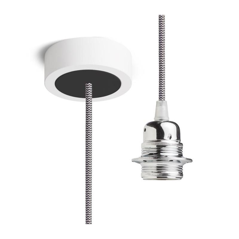 Zestaw wiszący z lakierowaną aluminiową podstawą metalowym gniazdkiem E27 i tekstylnym kablem. Nadaje się do użytku indywidualnego lub do zawieszenia lekkich abażurów. Polecane abażury: ARISTA DELI JAKARANDA DOUBLE 40/30 DOUBLE 55/30 ASPRO 40/30 RON 40/25 RON 55/30 RON 60/19 TEMPO 30/19 TEMPO 50/19.