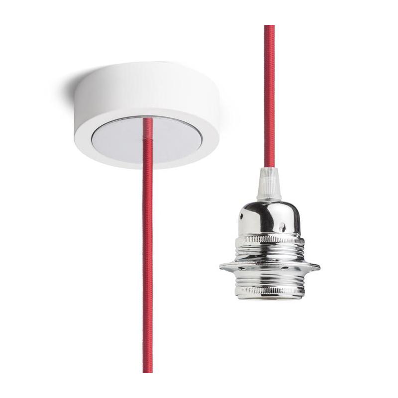 Zestaw wiszący z lakierowaną aluminiową podstawą metalowym gniazdkiem E27 i tekstylnym kablem. Nadaje się do użytku indywidualnego lub do zawieszenia lekkich abażurów. Polecane abażury: ARISTA DELI JAKARANDA DOUBLE 40/30 DOUBLE 55/30 ASPRO 40/30 RON 40/25 RON 55/30 RON 60/19 TEMPO 30/19 TEMPO 50/19.