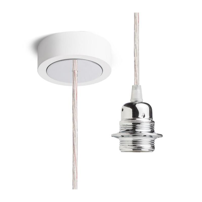 Zestaw wiszący z lakierowaną aluminiową podstawą metalowym gniazdkiem E27 i tekstylnym kablem. Nadaje się do użytku indywidualnego lub do zawieszenia lekkich abażurów. Polecane abażury: ARISTA DELI JAKARANDA DOUBLE 40/30 DOUBLE 55/30 ASPRO 40/30 RON 40/25 RON 55/30 RON 60/19 TEMPO 30/19 TEMPO 50/19.