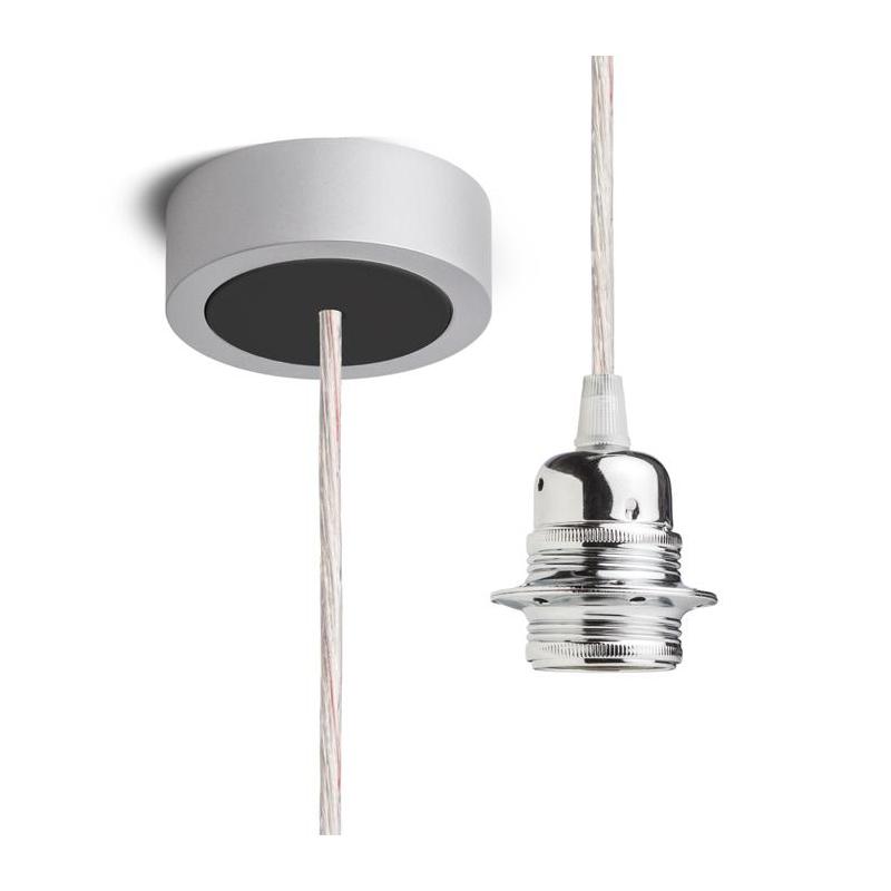 Zestaw wiszący z lakierowaną aluminiową podstawą metalowym gniazdkiem E27 i tekstylnym kablem. Nadaje się do użytku indywidualnego lub do zawieszenia lekkich abażurów. Polecane abażury: ARISTA DELI JAKARANDA DOUBLE 40/30 DOUBLE 55/30 ASPRO 40/30 RON 40/25 RON 55/30 RON 60/19 TEMPO 30/19 TEMPO 50/19.