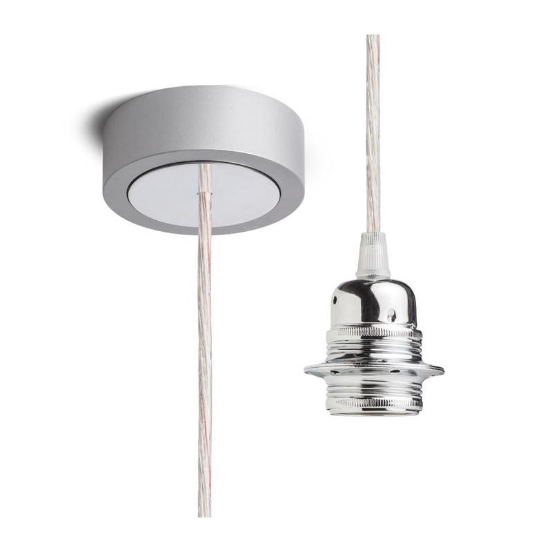 Zestaw wiszący z lakierowaną aluminiową podstawą metalowym gniazdkiem E27 i tekstylnym kablem. Nadaje się do użytku indywidualnego lub do zawieszenia lekkich abażurów. Polecane abażury: ARISTA DELI JAKARANDA DOUBLE 40/30 DOUBLE 55/30 ASPRO 40/30 RON 40/25 RON 55/30 RON 60/19 TEMPO 30/19 TEMPO 50/19.