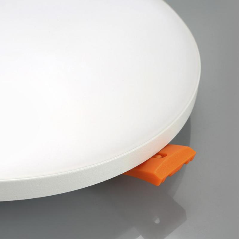 Lampa LED okrągła do sufiów g-k z niską głębokością montażową i designerską ramką. Można ją łączyć z rodziną lamp sufitowych Larisa. Rozmiar otworu montażowego można dobrać za pomocą przesuwnych sprężyn montażowych. Lampy mogą zastąpić lampy halogenowe bez konieczności poprawiania otworów montażowych.