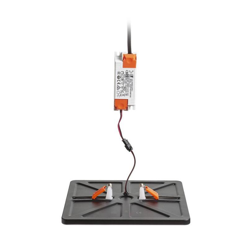 Lampa LED kwadratowa do montażu w sufitach g-k z niską głębokością montażową i designerską ramką. Można je łączyć z rodziną lamp sufitowych Larisa. Rozmiar otworu montażowego można dobrać za pomocą przesuwnych sprężyn zaciskowych. Oprawy można w wygodny sposób wymienić za już zainstalowane wcześciej oprawy halogenowe bez konieczności modyfikacji otworów montażowych.