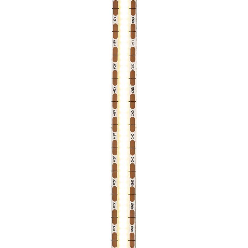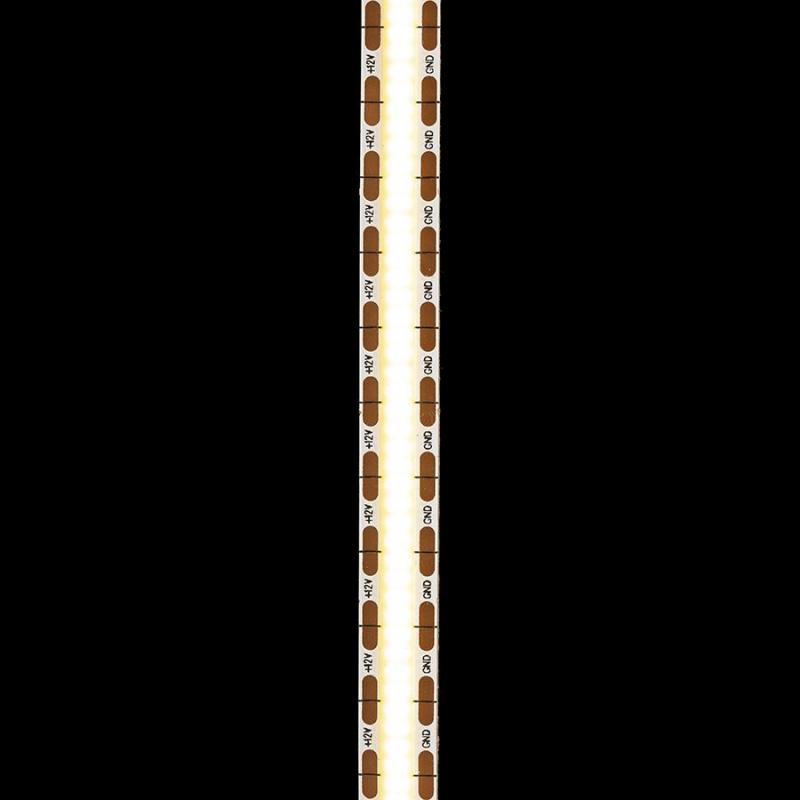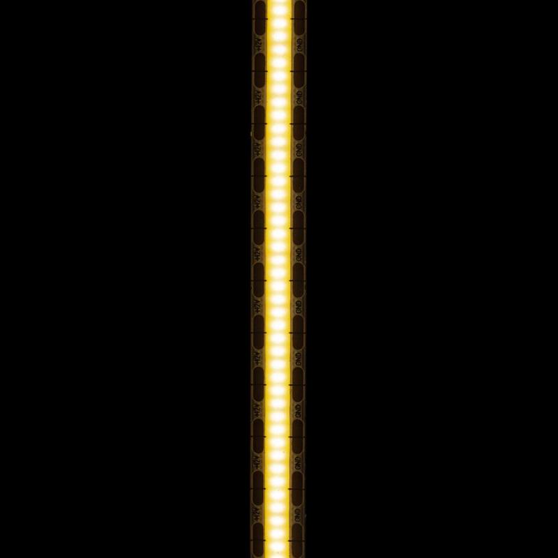 Taśma LED COB o doskonałym strumieniu świetlnym. Zapewnia jednolite światło na całej swojej długości bez pojedynczych punktów. Dostępna w 5 metrowym opakowaniu podzielnym przez 075 cm z dwustronną taśmą samoprzylepną z tyłu. Do sterowania taśmami LED należy zakupić odpowiedni sterownik. Możliwość ściemniania przy użyciu kontrolera G13804 lub G12378. 3000K - 950lm/m; 4000K - 1000lm/m