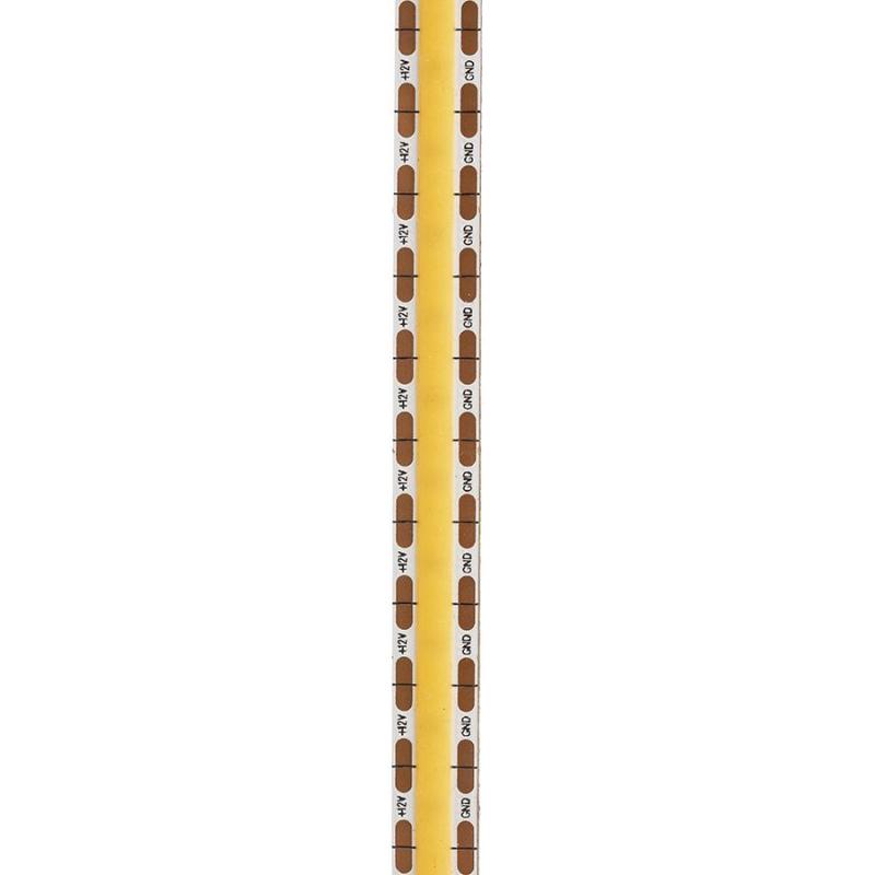 Taśma LED COB o doskonałym strumieniu świetlnym. Zapewnia jednolite światło na całej swojej długości bez pojedynczych punktów. Dostępna w 5 metrowym opakowaniu podzielnym przez 075 cm z dwustronną taśmą samoprzylepną z tyłu. Do sterowania taśmami LED należy zakupić odpowiedni sterownik. Możliwość ściemniania przy użyciu kontrolera G13804 lub G12378. 3000K - 950lm/m; 4000K - 1000lm/m