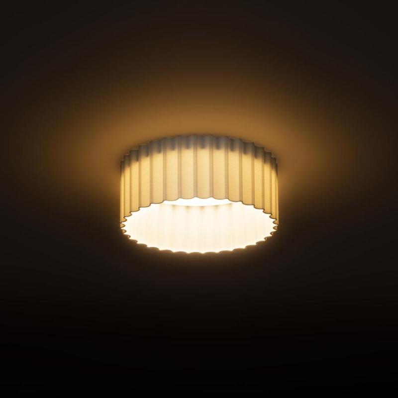 Oprawa LED do wbudowania w sufit z płyt gipsowo-kartonowych o małej głębokości wbudowania i dekoracyjnym kloszu. Klosz jest tworzony przez druk 3D. Wykonany z przyjaznego dla środowiska materiału PLA który jest w pełni degradowalny. Wielkość otworu montażowego można dobrać za pomocą przesuwnych sprężyn montażowych. W wygodny sposób można zastąpić istniejące żarówki halogenowe lampami bez konieczności regulacji otworów montażowych.