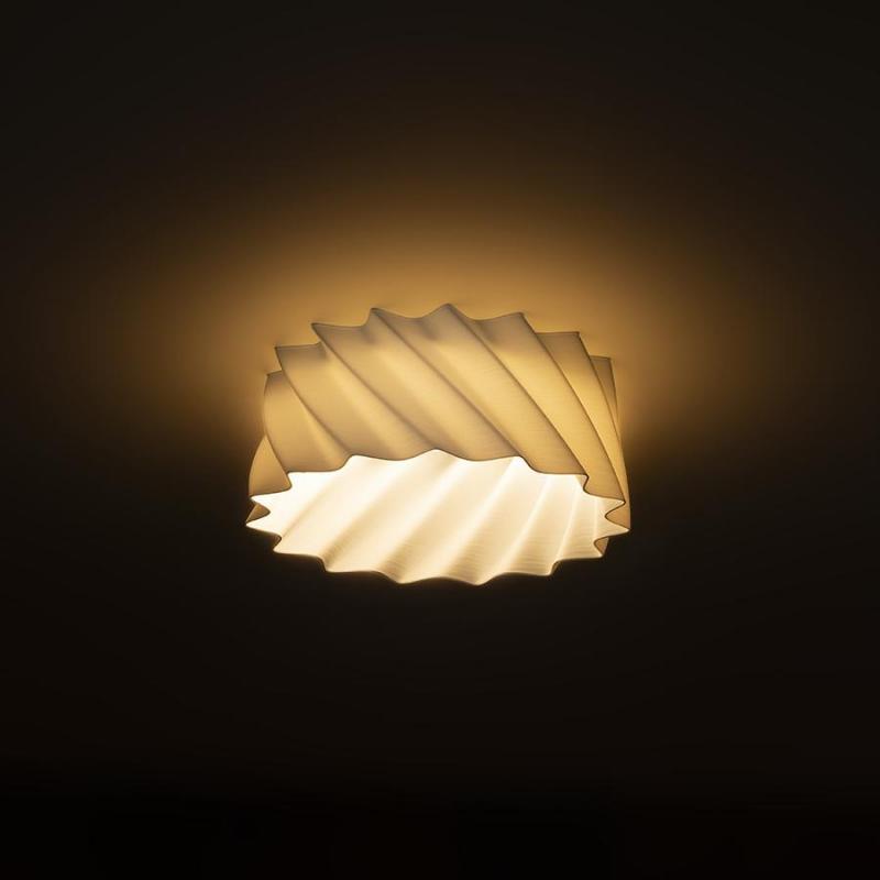 Oprawa LED do wbudowania w sufit z płyt gipsowo-kartonowych o małej głębokości wbudowania i dekoracyjnym kloszu. Klosz jest tworzony przez druk 3D. Wykonany z przyjaznego dla środowiska materiału PLA który jest w pełni degradowalny. Wielkość otworu montażowego można dobrać za pomocą przesuwnych sprężyn montażowych. W wygodny sposób można zastąpić istniejące żarówki halogenowe lampami bez konieczności regulacji otworów montażowych.