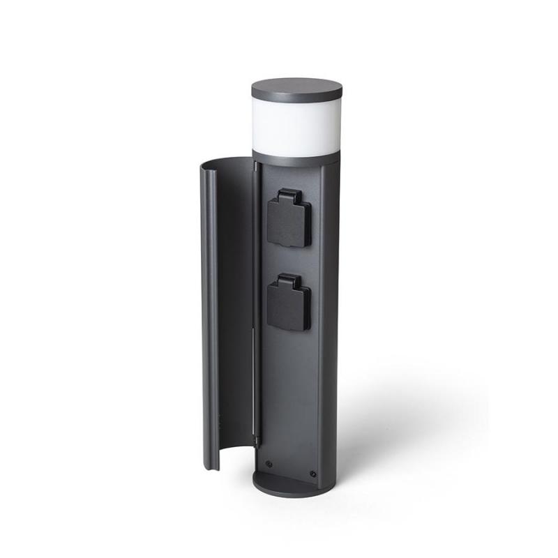 Zewnętrzna lampa słupkowa z dwoma oprawkami (Typ E) na źródła światła LED G9. Gniazda ukryte są w korpusie lampy za otwieraną pokrywą. Maksymalne obciążenie gniazd wynosi 2x2000W. Oprawka typu E jest standaryzowana dla następujących krajów: Belgia Czechy Francja Korsyka Polska Słowacja.
