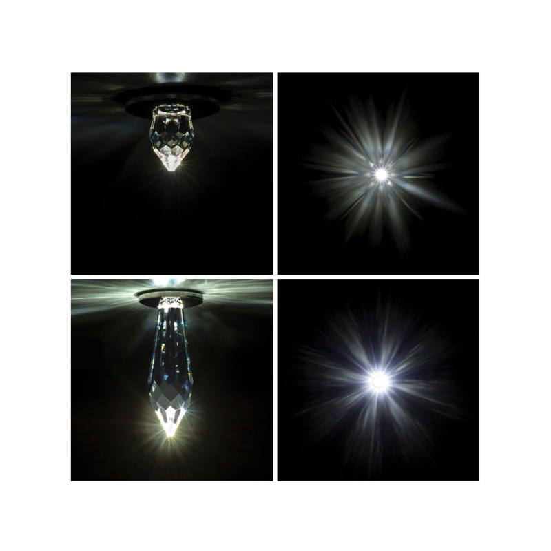 The LED crystal is supplied with a special mounting bracket for easy installation in plasterboard or wooden board and is equipped with a main connector for quick installation. The individual crystals in the collection remain interchangeable.
