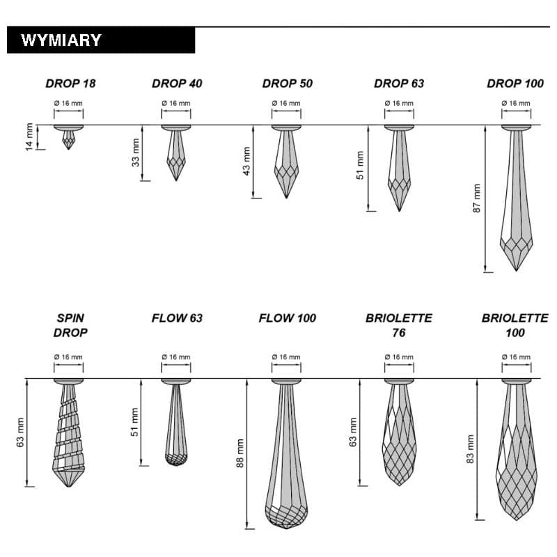 The set consists of two types of crystals from the LED Crystal collection - DROP 18, DROP 40. The exceptionally cut crystals disperse the point light, creating a fantasy effect of brilliantly shining stars. The product marking "Made with crystals from Swarovski®" confirms that these luminaires have been manufactured with authentic Swarovski crystals.