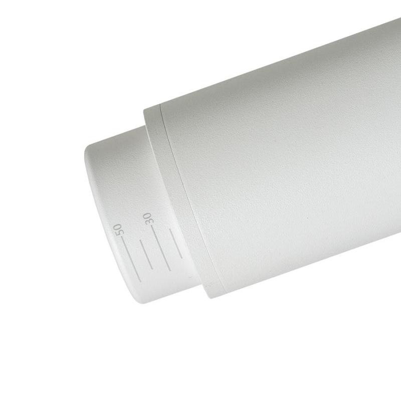 Reflektor cylindryczny do szyny 3-fazowej z możliwością regulacji stożka światła za pomocą systemu powiększenia 10-50 °. Oprawa jest przystosowana do źródeł światła LED z gniazdem GU10. W oprawie należy użyć źródeł światła o kącie rozsyłu 120° aby zapobiec niepożądanym cieniom.