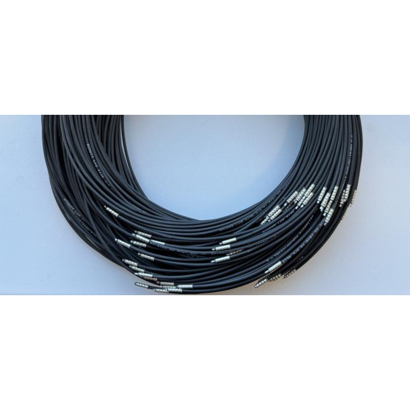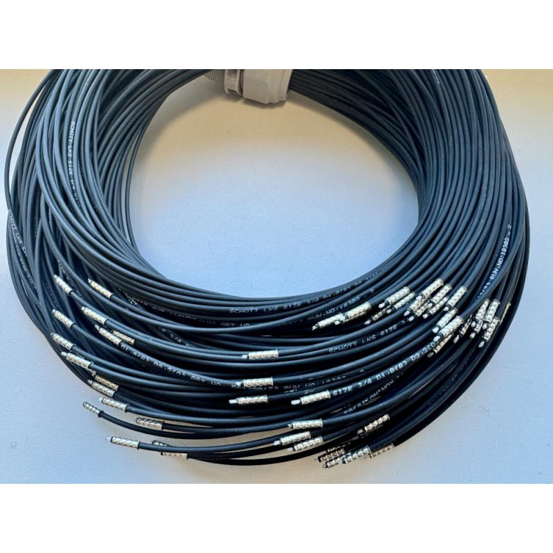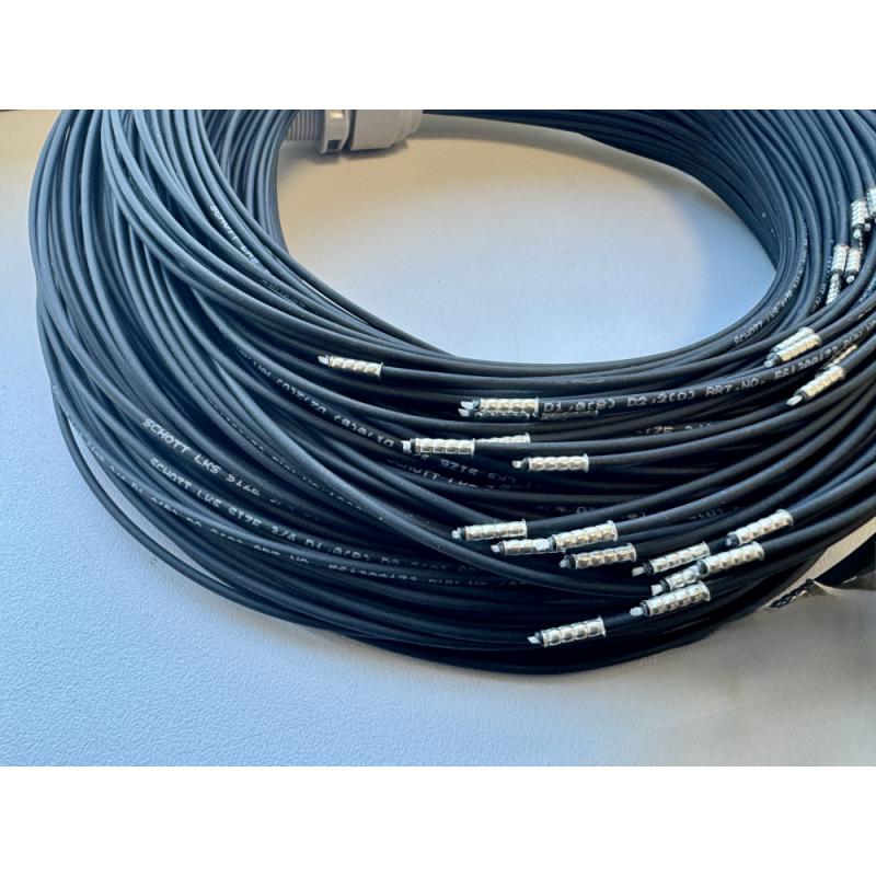 Wiązka światłowodowa przygotowana do montażu 75pkt (25pkt 1m ,25pkt 1.5m i 25pkt 2m) - wykorzystane włókna są światłowodami szklanymi odpornymi na wysoką temperaturę (średnica aktywna 1.1mm), dodatkowo zewnętrza powłoka ochronna wykonana z materiału Megolon przygotowanego do aplikacji w wyższych temperaturach (140st. C)